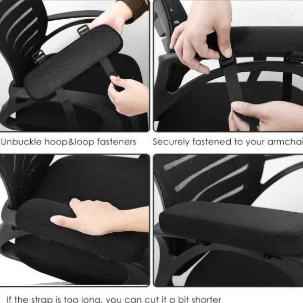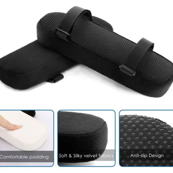 Material: Bomull Färg: Svart Storlek: 25*10*5cm Leveransomfattning: 2 * Stol armstödskuddar Perfekt storlek, lämplig för de flesta kontorsstolar hemma eller på kontoret. Armstödskudden har två justerbara elastiska band som kan skräddarsys och justeras till valfri armstödsstorlek. Kvalitet: Högkvalitativt högdensitets memory foam och sammetspolyester. Armbågar och armar formas perfekt efter memory foam, och trycket avlastas också väl. (Obs: Eftersom memory foam är temperaturkänsligt är den bästa användningstemperaturen för memory foam mellan 15 och 20°C.) Intim design: Med bomull behöver du inte oroa dig för att armstödskudden glider runt på ditt armstöd. Den dolda dragkedjan på överdraget kan tas bort för enkel maskintvätt. Multifunktionell: Förutom armstödskudden på stolen kan den även användas som handledsstöd när du skriver eller använder musen. Lämplig för kontorsstolar, gamingstolar, flygplansstolar, matstolar, rullstolar etc. Lindring och smärtlindring: Om du har en kontorsstol eller behöver sitta på en stol under långa perioder kan du behöva dessa armbågskuddar för att minska trycket på dina armbågar och underarmar. ”