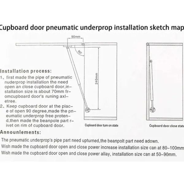 Stabil installation: Lätt att installera, hållbar och stabil. Rund monteringsplatta av metall: skåpets kroppskontaktyta är större, trepunktspositionering, installationen är starkare. Paketet innehåller: 2 gasfjädrar. Total längd: 27 cm. Arbetstryck: 100N/10kg Produktdetaljer: Cylinderkropp och vevstake: Kolvcylinderkropp av höghållfast material är integrerad med jordvevstång, med starkare belastning och flexibel strömbrytare. ABS-gashandledare: slitstark ABS med kortfjäderanordning lätt att öppna, vacker och generös och mer hållbar. Användning: Skåpets kroppskontaktyta är större, placering av tre punkter, installationen är starkare och mer hållbar. Kan enkelt installeras med tillbehör och skruvar.100 % riskfritt: Köp en gaslyft riskfritt med 24 timmars respons. Om produkten krossas under transport och andra problem, vänligen kontakta oss i tid så återkommer vi till dig så snart som möjligt.