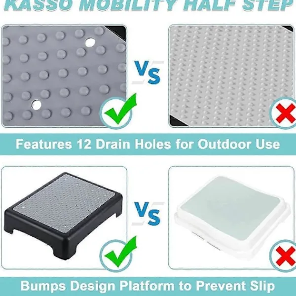 Från Kasso, Ett Namn Du Kan Lita På – KASSO är specialiserat på att tillhandahålla högkvalitativa produkter för äldreomsorg, handikapptillbehör och mobilitetshjälpmedel & utrustning. Denna plaststegplattform är en praktisk present till seniorer i assisterat boende. (Obs: Vi rekommenderar att denna fotpall bäst används med skor på. Personer med känsliga fötter kan känna smärta om de använder bara fötter.)