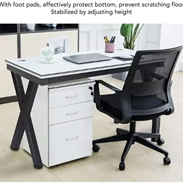 4、GOLVSKYDD: De robusta bordsbenen är utrustade med dynor som effektivt skyddar undersidan, förhindrar repor på golvet och kan stabiliseras genom att justera höjden.