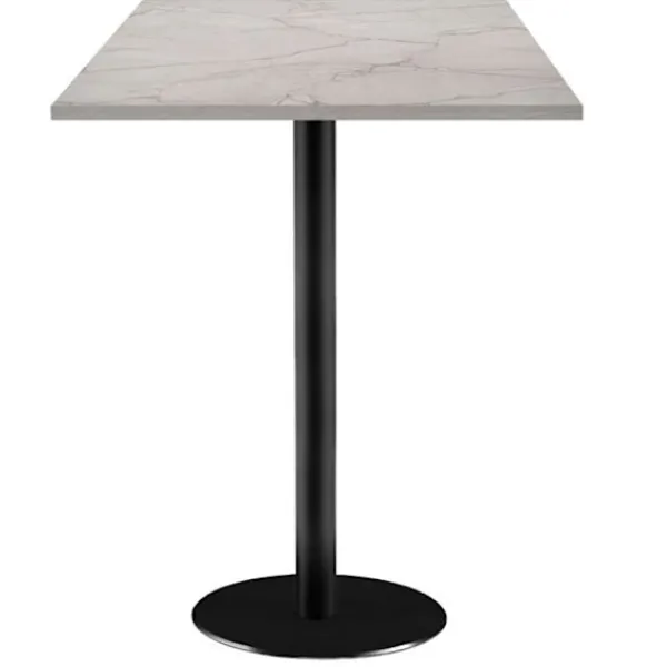 Ståbord för kök, matsalar eller restauranger, för inomhusbruk. Denna artikel finns även i standardhöjd. Europeisk produkt av hög kvalitet med noggrant utförande: skivan tillverkad i Frankrike, fot tillverkad i Italien. Fot i thermolackerad gjutjärn – svart. Skiva av vattenresistent spånskiva med laminatbeläggning och kanter i PVC. Fot: bas Ø 40 cm, pelare Ø 6 cm, vikt 17 kg, höjd 110 cm. Levereras med justerbara fötter för ojämna golv. Skiva: 60 x 60 cm, tjocklek 2,9 cm, vikt 6,5 kg, kapacitet 2 personer. Undersidan av skivan i vit melamin. Skiva förberedd med insats för perfekt fästning till foten. Levereras i kit, lätt montering, skruvar ingår. Mycket eftertraktad material inom kollektiv kosthållning för sina egenskaper: hygien och hållbarhet. Lätt att underhålla: rengöring med lätt såpvatten eller mild desinfektionsmedel, utan rengöringsmedel eller slipmedel. 100% europeisk produkt.