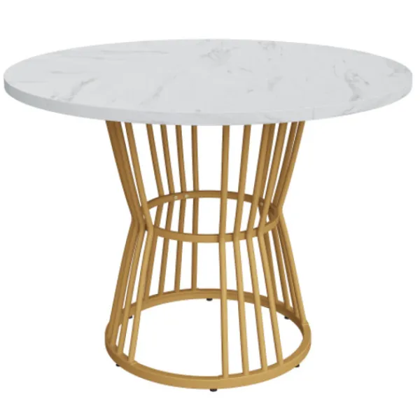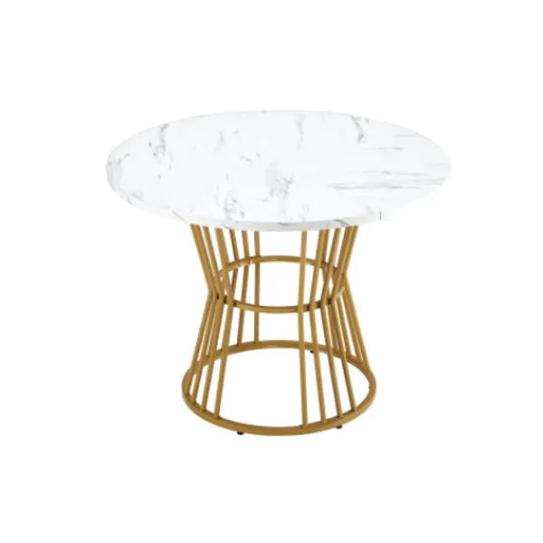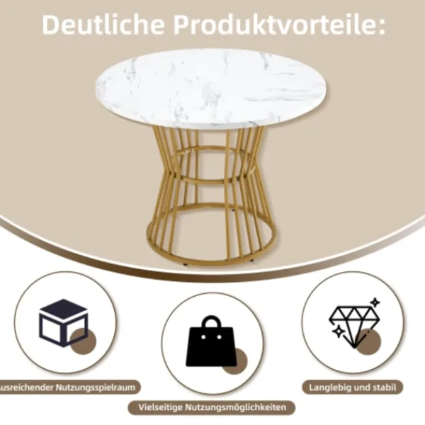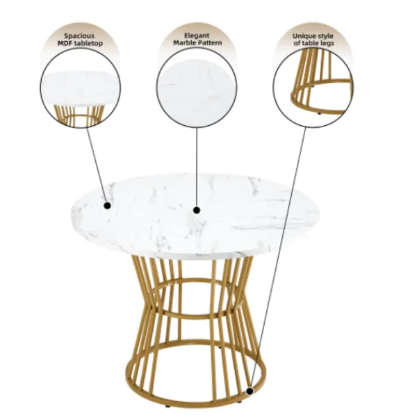 Unik design: Materialet på bordsskivan är MDF. Den runda arbetsytan har en diameter på 100 cm och en höjd på 75 cm, med ett modernt marmormönster och ett unikt och stilfullt utseende.