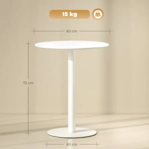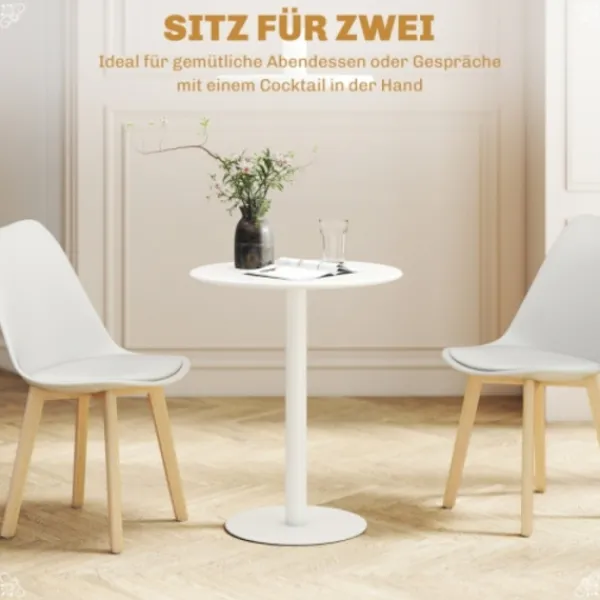 Mångsidig & platsbesparande: Detta kompakta runda matbord rymmer två personer, perfekt för små kök eller matsalar. Perfekt som skrivbord på hemmakontoret, det övertygar både inomhus och utomhus genom sin stilrena, funktionella användning.