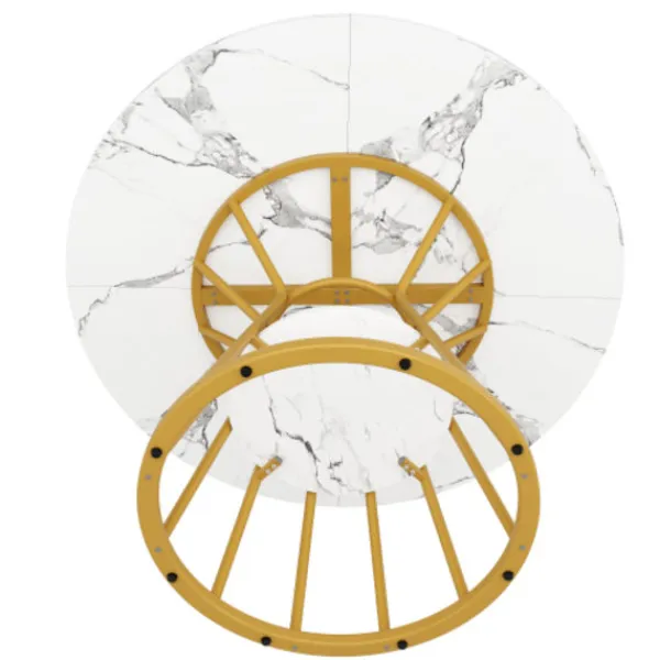 Högkvalitativt material: Bordsskivan är tillverkad av förstärkt MDF-material med marmorfinish, vilket inte bara ser vackert och elegant ut utan också säkerställer en stabil och hållbar bordsstruktur och en hög lastkapacitet. Utrustad med metallstödrör för att säkerställa bordsskivans stabila lastkapacitet och ytterligare hyllor på benen för ökat förvaringsutrymme.