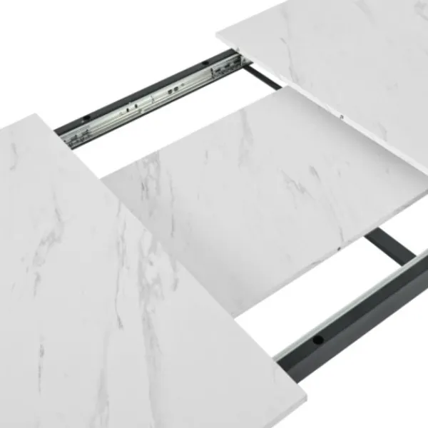 Vårt fällbara matbord (mått: 140/180 x 80 x 75 cm) är utrustat med utdragbara skenor, vilket möjliggör flexibla justeringar. Detta gör det idealiskt för sociala sammankomster och större grupper. Justerbara fötter, lämpliga för olika golvtyper, skyddar mot repor. Vårt fällbara matbord erbjuder inte bara stilfull design utan också praktisk flexibilitet.