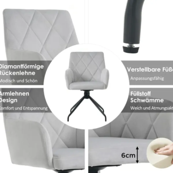 360° stoldesign: Denna design erbjuder allsidig flexibilitet och gör det möjligt för användaren att fritt växla mellan olika riktningar utan att flytta stolen, vilket är idealiskt för användning i multifunktionella rum som arbetsrum och vardagsrum.