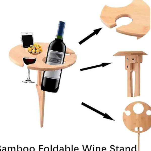 Vikbara Vinställ: Detta bord kan fällas ihop, vilket är praktiskt för förvaring och transport, vilket ger dig stor bekvämlighet, perfekt tillbehör för alla evenemang. Detta picknickbordsset för utomhusvin kommer att piffa upp alla sammankomster eller fester. Perfekt för alla tillfällen: Vinbordet för utomhusbruk, perfekt för att anordna vinfestivaler utomhus, familjepicknickar, camping, stränder eller tillbringa en lugn natt i trädgården. Lätt att använda: Kompakt hopfällbar storlek och lätt vikt, vilket gör vinpicknickbordet lätt att bära och kommer inte att bli ett tungt föremål och en börda för picknicken. Den spetsiga kolumnen kan stödja bordet under olika terränger. Fäst bordet och vinglashållaren på sanden på stranden eller i trädgården, grillplatsen och gräset i parken. Dimension: Förlängningsstorlek (Dia x H): Cirka 20 x 30 cm/7,9 x 11,8 tum, hopfällbar längd: Cirka 40 cm/15,7 tum. Dess design rymmer en flaska vin, två glas och en tallrik med din favoritmat. Vinbord i bambu: Handgjort skrivbord i bambu med eleganta kurvor är alltid det bästa valet för en romantisk dejt med vin, naturlig färg och varm beröring är något inget annat material kan jämföra.”,