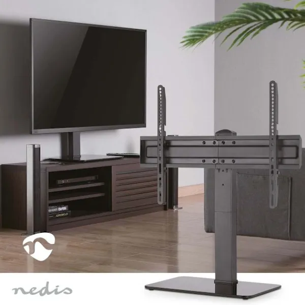 Förhöj din TV-upplevelse med Nedis Universal Swivel Table Top TV Stand, där stil möter funktionalitet sömlöst.