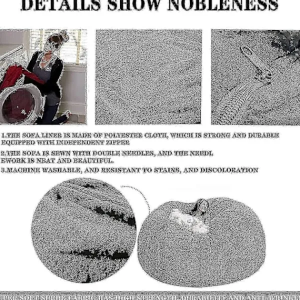 BeskrivningSittsäcksöverdrag är slitstarka, ultramjuka, Vi har uppgraderat tyget till ett tjockare, lyxigare material byggt för att stå emot tidens tand.(Ingen fyllning) – Storlek135 x 65cm150x75cm180x90cm(Ingen fyllning) – Tillverkad av uppgraderad mikrosammet, som är tjockare, mjukare, ger en supermjuk och silkeslen känsla, Lätt att ta bort och tvätta och slita och fläckbeständig, byggd för att stå emot tidens tand.(Ingen fyllning) – Ersätt din befintliga soffa med denna extremt bekväma sittsäck i päls som initierar ett modernt tillskott i ditt vardagsrum. Ger dig ett stort utbud av lyxiga sittsäckar som passar din livsstil perfekt.(Ingen fyllning) – Från små sittsäckar till långa, jumbosittsäckstolar, dessa lyxiga loungemöbler är det perfekta tillskottet till alla källare, familjerum, studentrum eller sovrum, oavsett om det är som en bekväm studieplats eller en spelstol. Sittsäckstolar för vuxna, tonåringar och barn.