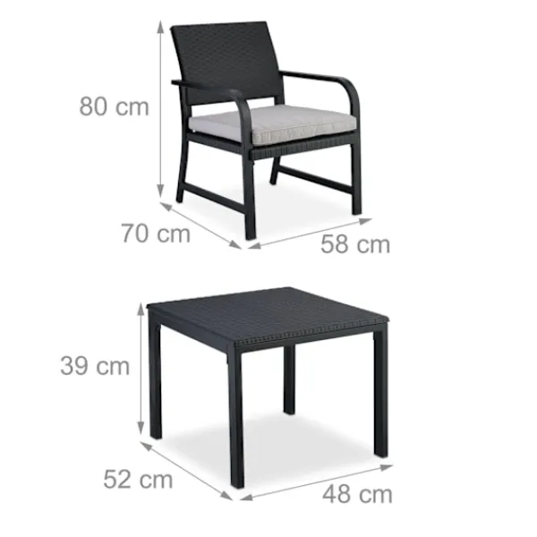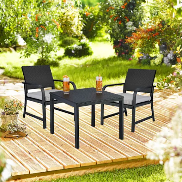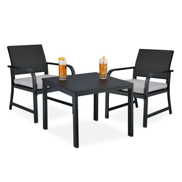 Detta trädgårdsset i rottinglook är inte bara en fröjd för ögat utan också en praktisk lösning för alla som älskar att tillbringa tid utomhus. Den moderna designen passar perfekt in i alla typer av utomhusmiljöer, oavsett om det är en liten balkong eller en större terrass. Den väderbeständiga konstruktionen säkerställer att möblerna håller sig i toppskick, oavsett väderförhållanden. Den rottingliknande ytan ger en elegant touch samtidigt som den är enkel att underhålla, vilket gör den idealisk för dagligt bruk.