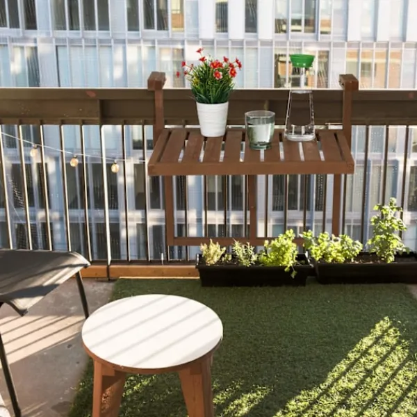 En av de mest uppskattade funktionerna hos detta balkongbord är dess platsbesparande design. När bordet inte används kan det enkelt fällas ner, vilket frigör värdefullt utrymme på balkongen. Den justerbara höjden gör det möjligt att anpassa bordet efter olika räckesdimensioner, vilket gör det till en flexibel lösning för alla typer av balkonger.