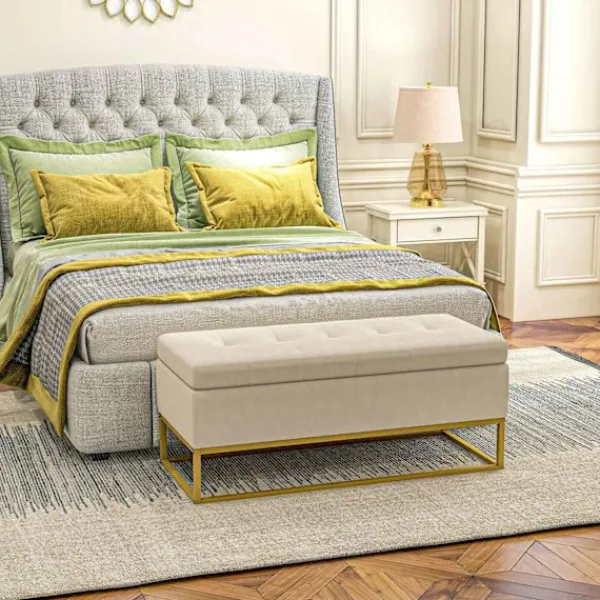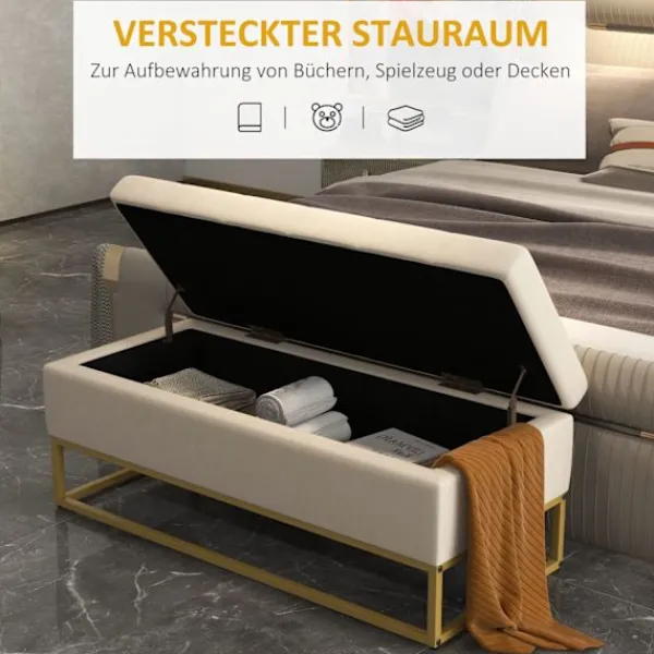 Så smart kombineras sittkomfort med förvaringsutrymme! Denna bröstbänk är den perfekta lösningen om du letar efter en funktionell och estetisk möbel. Den eleganta designen passar harmoniskt in i din interiör och erbjuder dig och dina gäster en extra sittplats. Använd det generösa förvaringsutrymmet under sitsen – vare sig det är för filtar, handdukar eller andra skatter. Med blir ditt hus ett hem på nolltid!