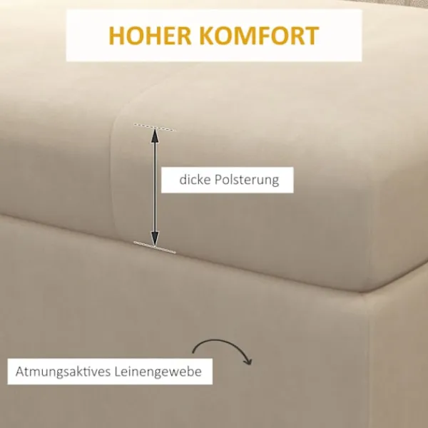 - ✔ Filtar, kuddar och annat kan förvaras i förvaringsutrymmet under sitsen