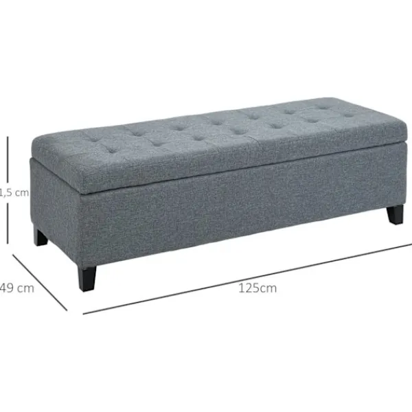 Att hitta rätt design är avgörande för att sätta den speciella touchen till ett rum, och denna eleganta, eleganta förvaringsbänk är det perfekta tillskottet till alla vardagsrum, sovrum eller entréer. Sängbänken har en vackert elegant exteriör och knappsömmar på ovansidan, samt robusta träben och en rymlig interiör som är idealisk för förvaring av extra kuddar och filtar och tillbehör.