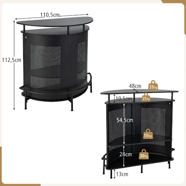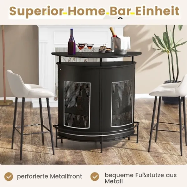 Det eleganta svängda utseendet och den chica stilen gör denna barenhet till ett attraktivt tillskott till alla vardagsrum, kök eller pubar. Alternativt kan den fungera som ett litet bord eller förvaringshylla i flera nivåer för att möta dina olika behov. Med sin solida metallram och justerbara fötter erbjuder detta barbord en hållbar och stabil konstruktion, vilket säkerställer att det förblir en pålitlig del i ditt hem i många år framöver.