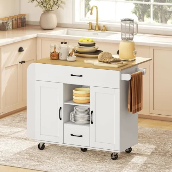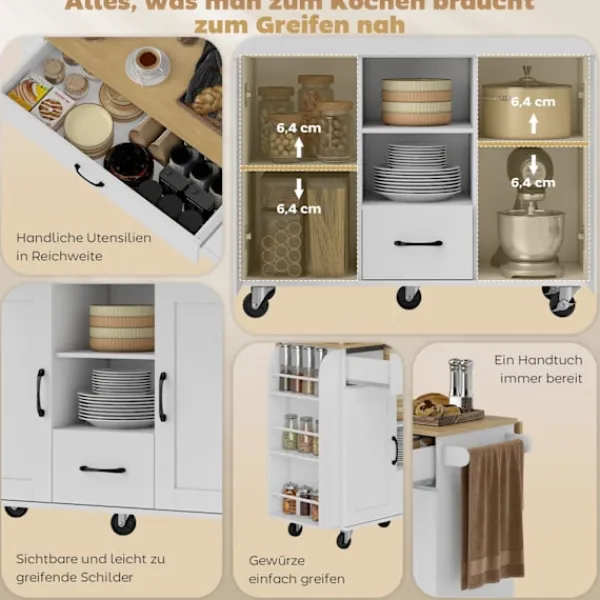 Förvandla ditt röriga kök med en mångsidig köksvagn som erbjuder gott om förvaring och en hopfällbar bänkskiva för extra arbetsyta. Öka effektiviteten och flexibiliteten med denna mobila lösning.