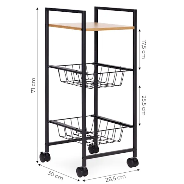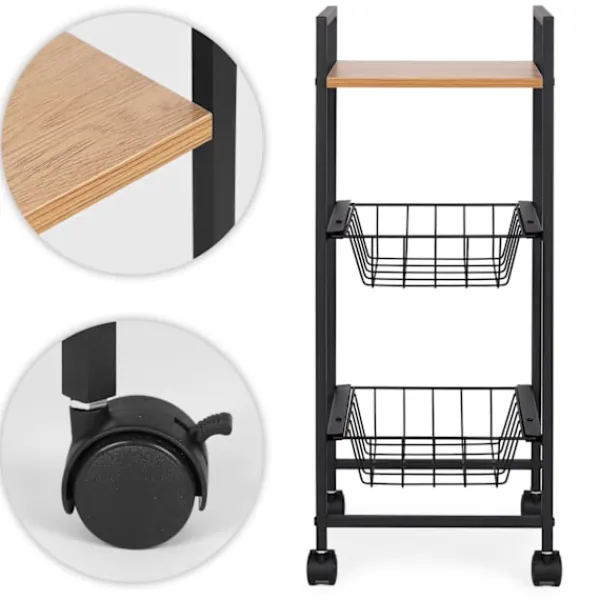 Förvandla ditt utrymme med vårt mångsidiga mobila ställ, perfekt för kök, badrum och annat. Denna kompakta förvaringslösning har en hållbar melaminbelagd MDF-hylla och en robust pulverlackerad metallram, vilket säkerställer både stil och motståndskraft. Med hjul för enkel rörlighet och lås för stabilitet är det den ultimata arrangören för alla rum.