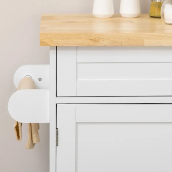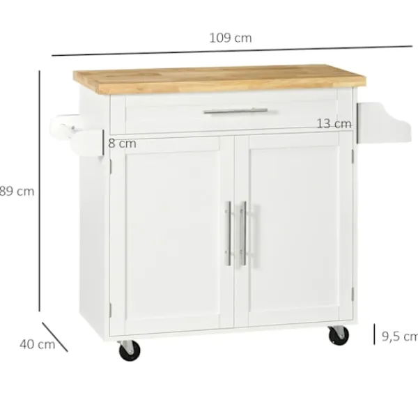 Denna köksvagn från är den idealiska lösningen för mer ordning och komfort i hemmet. En praktisk låda och ett stängt skåp ger gott om plats för köksredskap och mat. Det integrerade kryddstället och handdukshållaren ger extra komfort. Tack vare de fyra hjulen är köksvagnen lätt att flytta. Två parkeringsbromsar säkerställer ett säkert stativ Det är enkelt att hålla ordning med den praktiska serveringsvagnen från.
