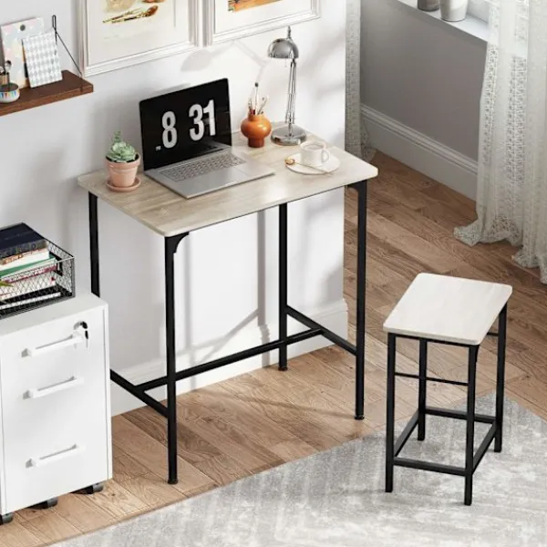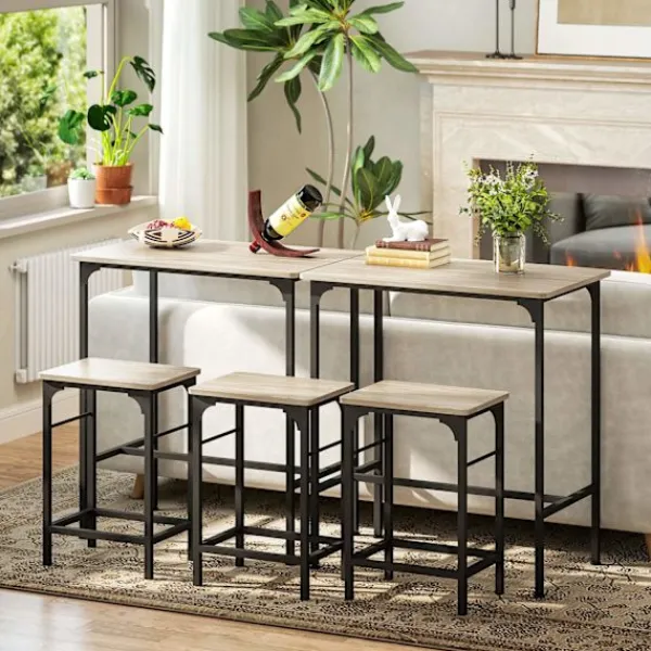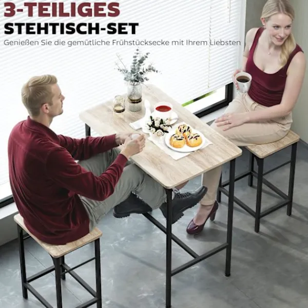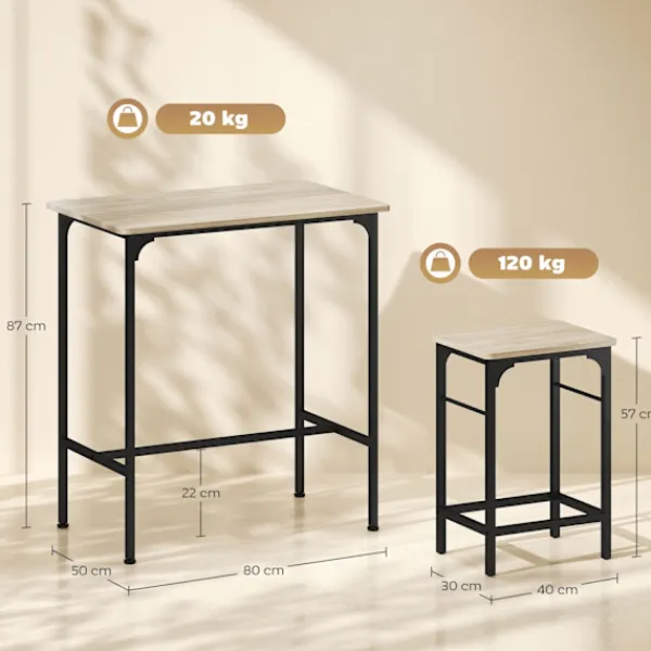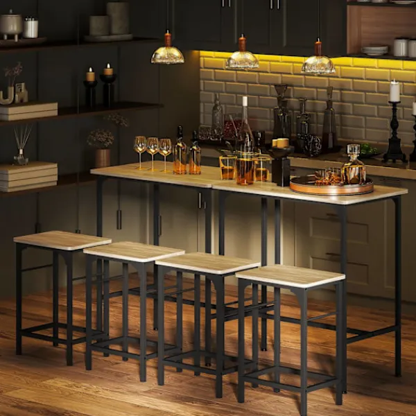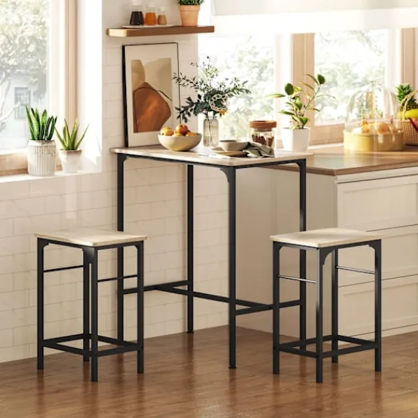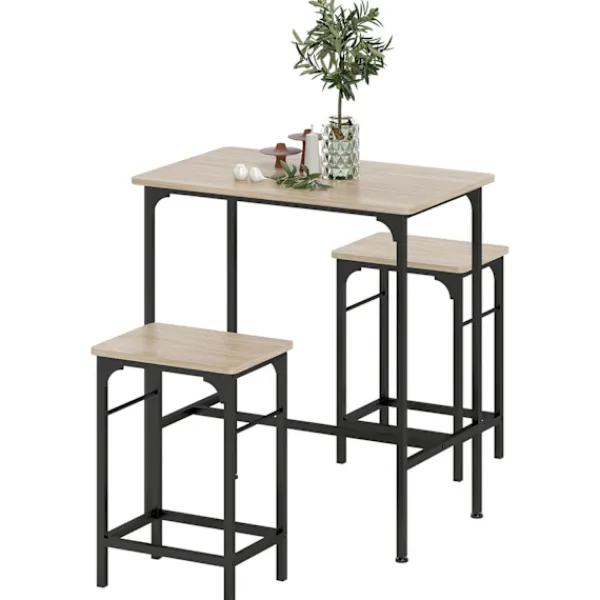 Förvandla ditt hem med detta industriella barbordsset – enkelt men allt annat än vanligt. Med ett barbord och två stolar erbjuder den en mysig tillflyktsort för dig och dina nära och kära, perfekt för lugna morgnar eller livliga kvällar. Den robusta stålramen med förstärkta tvärstänger säkerställer daglig stabilitet, medan pallar med fotstöd förbättrar komforten. Oavsett om det gäller delade drinkar eller en snabb frukost, det lovar ren glädje.