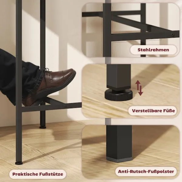 - Justerbara fötter stabiliserar bordet på ojämna golv.