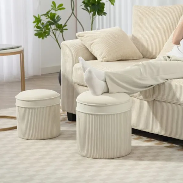 Förvandla ditt vardagsrum med denna platsbesparande ottomanuppsättning, med en hopfällbar design och dold förvaring för att rensa upp utrymmet samtidigt som den ger en touch av elegans.