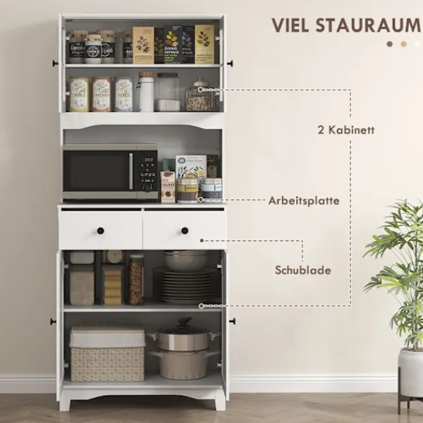 - ✔ Stor kapacitet på multifunktionsskåpet erbjuder gott om plats för mat, bestick och köksmaskiner