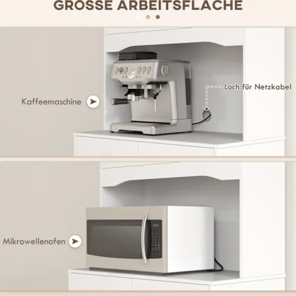 - ✔ Bänkskiva lämplig för mikrovågsugn eller kaffemaskin, inklusive hål för strömkabel