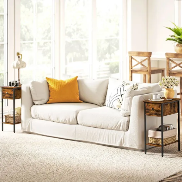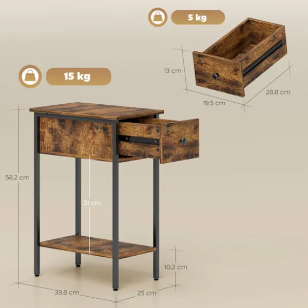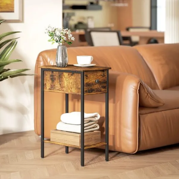 Förvandla ditt vardagsrum med detta mångsidiga sidobord, perfekt för användning som nattduksbord eller gavelbord. Dess industriella stil och praktiska funktioner gör den till ett måste i alla hem. Ta din i dag.