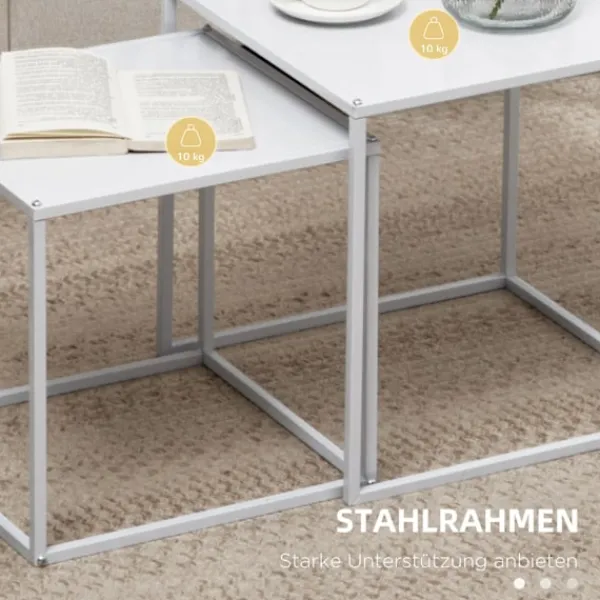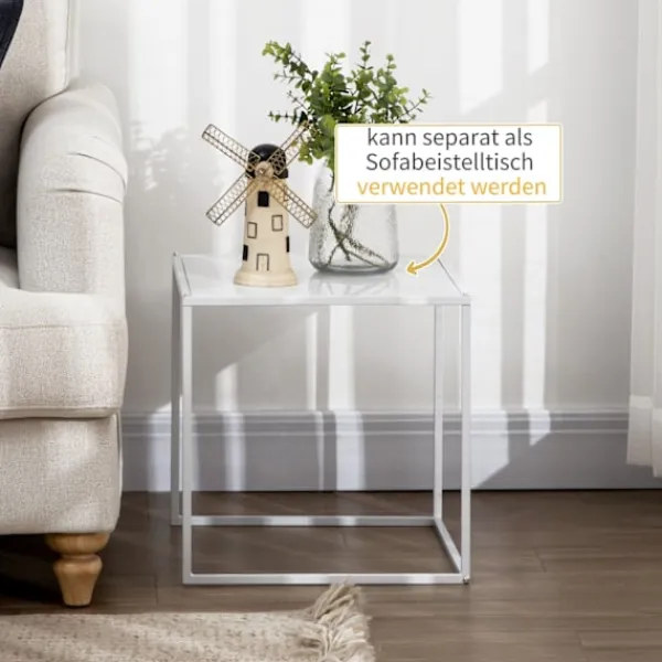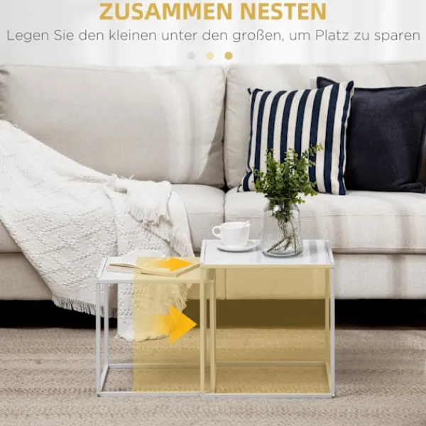 Upptäck det eleganta soffbordssetet från – en harmonisk kombination av funktionalitet och modern design. Dessa två mångsidiga soffbord är inte bara idealiska för att visa foton, böcker och snacks, utan kan också skjutas ihop för att spara utrymme. Den robusta stålramen och den klara, fyrkantiga formen på vardagsrumsbordet ger ditt rum en stilren accent. Skapa en inbjudande atmosfär med detta rymdmirakel.