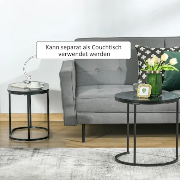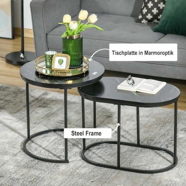 Detta set med 2 sidobord kommer i en trendig industriell stil med bordsskivor i marmorlook. Oavsett om det är ett sidobord, ett sängbord eller ett hallbord – detta sidobord erbjuder gott om extra förvaringsutrymme för växter, böcker och mycket mer. Tack vare sin praktiska design kan sidoborden staplas ovanpå varandra och förvaras för att spara utrymme. Dessa sidobord kommer snabbt att bli ett blickfång i ditt hem.