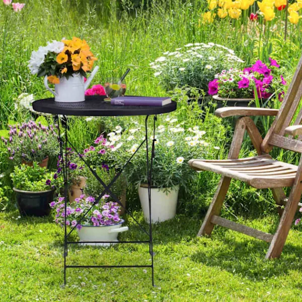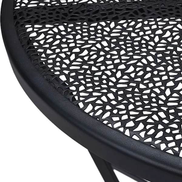 Det fällbara balkongbordet är inte bara praktiskt, utan också stilfullt. Den mattsvarta finishen och det dekorativa blomstermönstret i mesh ger en modern touch till din utomhusmiljö. När bordet inte används, kan det enkelt fällas ihop och förvaras utan att ta upp mycket plats, vilket gör det idealiskt för mindre utrymmen.
