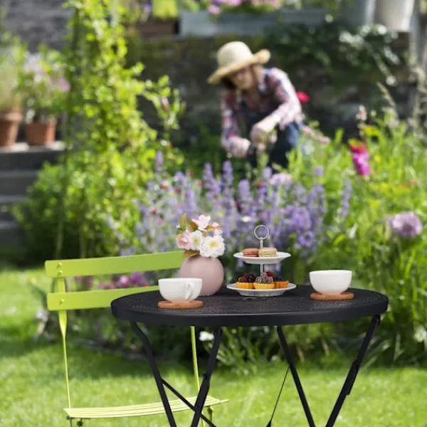 Förutom dess estetiska och funktionella fördelar, är detta balkongbord också mycket lätt att underhålla. Den robusta metallkonstruktionen är väderbeständig, vilket säkerställer att bordet behåller sitt snygga utseende även efter långvarig användning utomhus. Det centrala parasollhålet är en smart funktion som gör det möjligt att snabbt och enkelt sätta upp ett parasoll för att skydda mot solen.