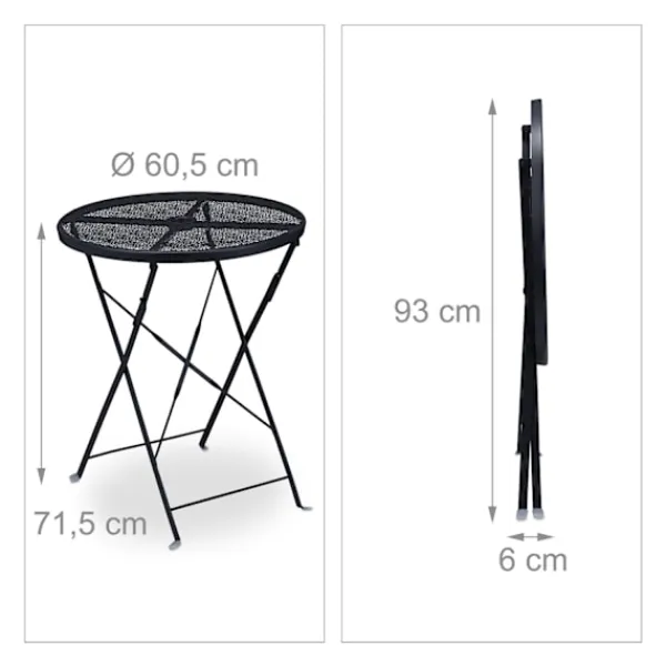 Detta eleganta och funktionella fällbara balkongbord är det perfekta tillskottet till din balkong eller uteplats. Tillverkat av hållbar metall, erbjuder detta runda bord en praktisk yta för att placera mat, dryck, växtkrukor och dekorationer. Dess unika design inkluderar ett centralt hål för ett parasoll, vilket gör det enkelt att skapa en skuggig och bekväm plats att njuta av utomhus.