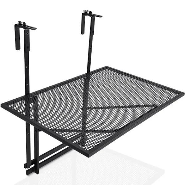 Förbättra din balkong eller uteplats med denna multifunktionella hängande hylla. Dess robusta järnkonstruktion och justerbara funktioner gör den idealisk för små utrymmen. Hämta din idag och njut av extra bekvämlighet.