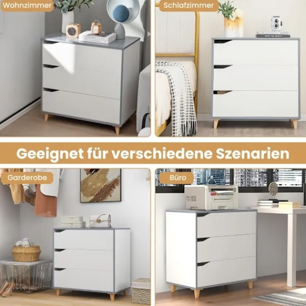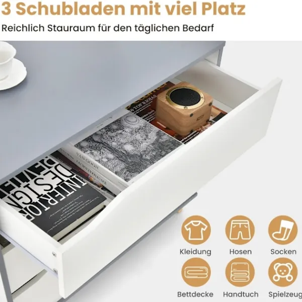 Är du trött på att ta itu med röran hemma eller på kontoret? Vårt mångsidiga skåp med 3 lådor är den perfekta lösningen för dig! Med sitt gott om förvaringsutrymme kan du enkelt lagra och organisera alla dina dagliga nödvändigheter, från kläder och filtar till handdukar och leksaker. Detta skåp är lämpligt för olika miljöer, oavsett om det är vardagsrummet, sovrummet, garderoben eller kontoret. Dess eleganta och moderna design ger en touch av elegans till alla rum, vilket förstärker din inredning. Men det är inte allt – vi prioriterar säkerhet och hållbarhet. Vårt skåp är utrustat med en tippskyddsanordning, vilket skapar ett säkert utrymme för små barn och husdjur.