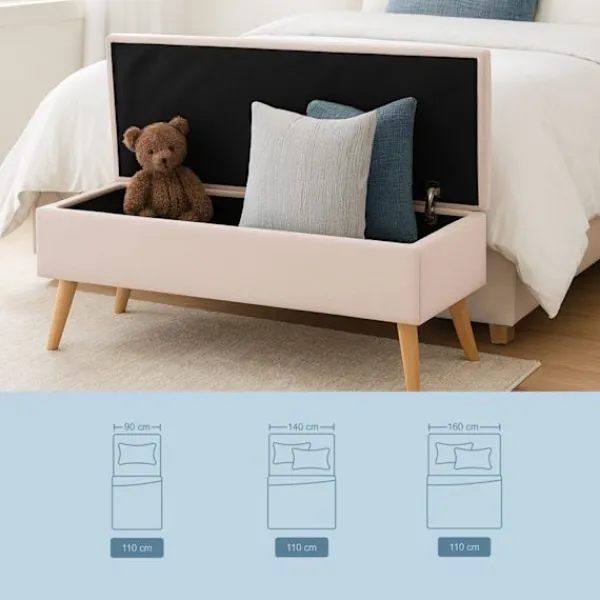 - Använd dold förvaring för tvätt, filtar eller leksaker under den vadderade, hopfällbara sitsen.
