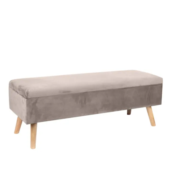 Den moderna förvaringsbänken erbjuder mångsidiga sittplatser och gott om förvaring, vilket gör den idealisk för alla rum. Dess mjuka sammetsklädsel och nedfällbara sits ger komfort och funktionalitet.