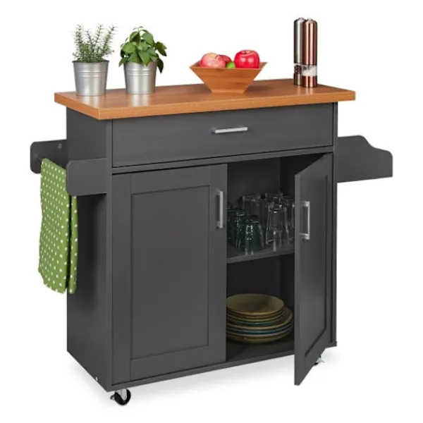 Förbättra ditt köks effektivitet med vår mångsidiga köksvagn, perfekt för att maximera utrymmet i kompakta kök. Denna vagn erbjuder gott om förvaring med ett rymligt skåp och organiserade lådor.