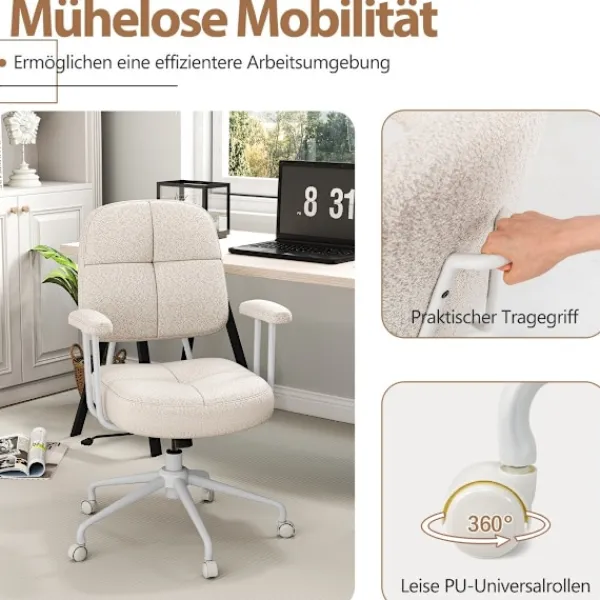 Ergonomisk kontorsstol förbättrar arbetsytans komfort med 13 cm tjock skumstoppning och hudvänligt chenilletyg. Njut av vintage charm och enkel rengöring, plus justerbart, vridbart ryggstöd för personliga sittplatser.
