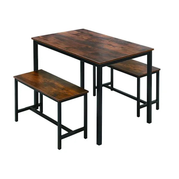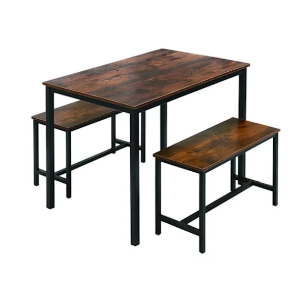 Matgrupp i industriell stil förbättrar ditt utrymme med en robust metallram och mörk träeffekt, perfekt för kompakta kök och lägenheter. Rymmer upp till fyra personer för mångsidiga matupplevelser.