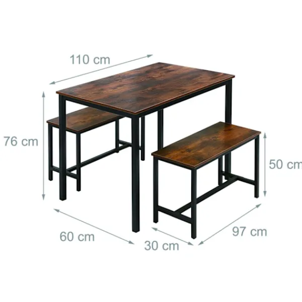 - Innehåller ett matbord och två matchande bänkar för en sammanhängande stil.
