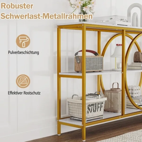 Förvandla ditt vardagsrum med vårt eleganta konsolbord, designat för att förstärka din inredning med tidlös lyx. Konsolbordet har en elegant metallram och en mångsidig skiva av fuskträ ådring eller fuskmarmor.