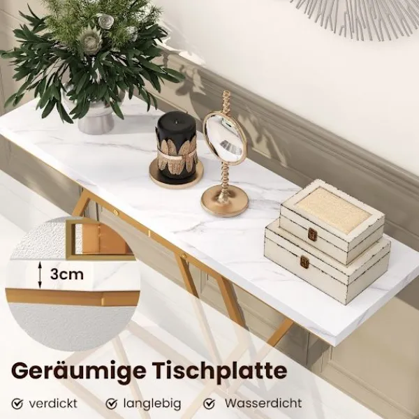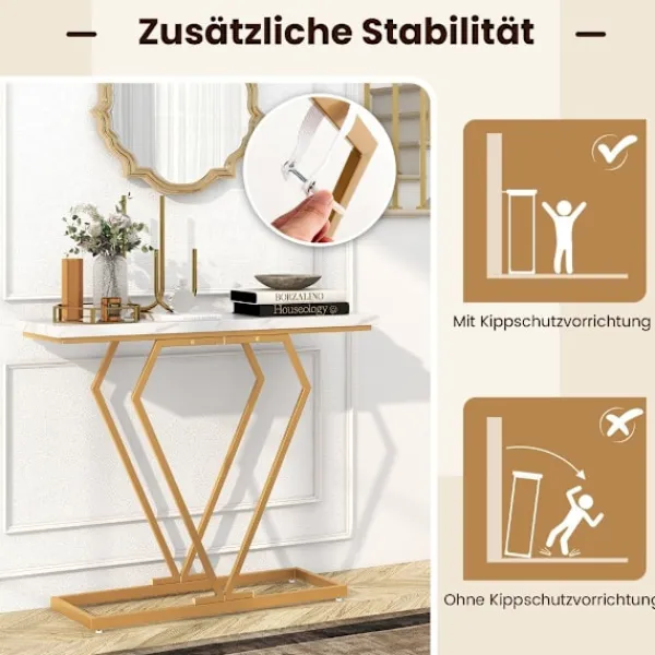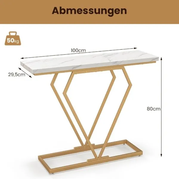 Förvandla ditt hem med detta lyxiga vita konsolbord, med en slående geometrisk guldram för modern elegans. Perfekt för att visa upp inredning eller organisera väsentliga saker med stil.
