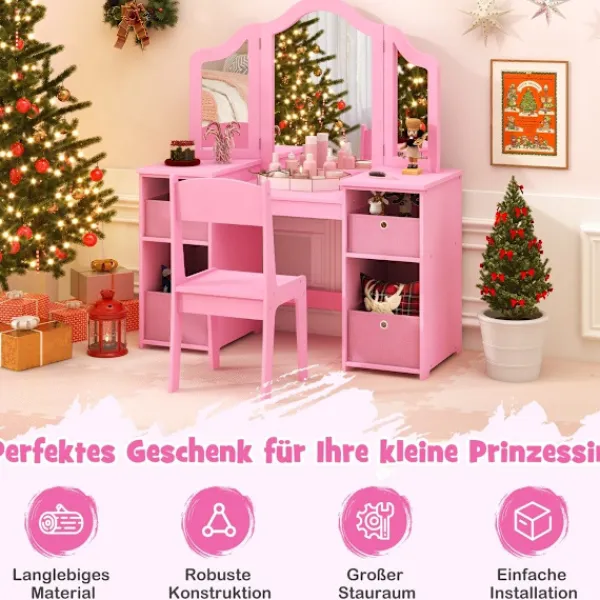 Det här sminksetet är perfekt för din lilla prinsessa och kombinerar funktionalitet och säkerhet. Med gott om förvaring och en hållbar konstruktion är den idealisk för olika aktiviteter. Ta din i dag för ett mångsidigt tillskott till alla rum.