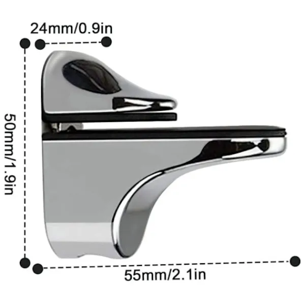 Sats med 4 justerbara hyllfästen, var och en mäter 55x50x24mm, för glas 3 till 20mm tjockt, skruvar ingår.