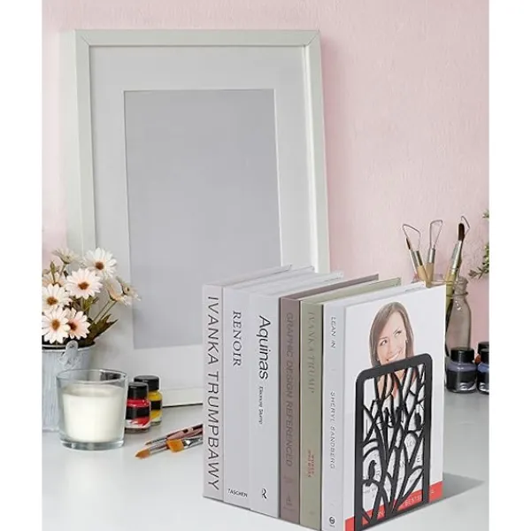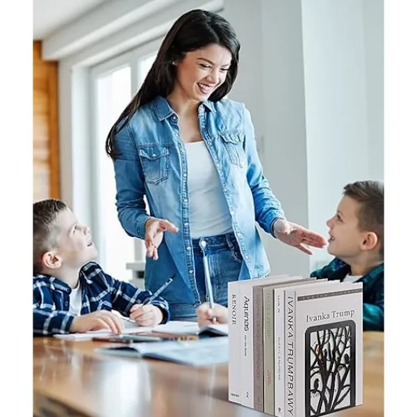 [Stabila Bokstöd i Metall] – De robusta bokstöden i metall är tillverkade med avancerad teknik, står upprätt och är inte lätta att böja. Den elektrostatiskt sprutade ytan förlänger bokstödens livslängd och förhindrar rost och repor. [Halkfri design med skumgummi] – Bokstöden har 4 halkfria skumgummikuddar på undersidan av varje dekorativt bokstöd för att förhindra att bokstöden glider. Du kan flytta bokstödet åt vänster och höger utan att repa skrivbordet. [Stilrent Trädmönster] – Dessa träformade bokstöd ger en popstil till din dekoration och den enfärgade paletten är lätt att integrera i en livfull inredning. Den släta känslan ger dig definitivt en trevlig upplevelse när du väljer böcker. [Håll rummet städat] – Perfekta bokhyllor för böcker, tidskrifter, filmer, DVD-skivor, videospel och andra föremål du vill placera. En utmärkt present till ivriga läsare och bokmalar. [Ingår i leveransen] – Du får 2 stycken / 1 par robusta bokstöd.