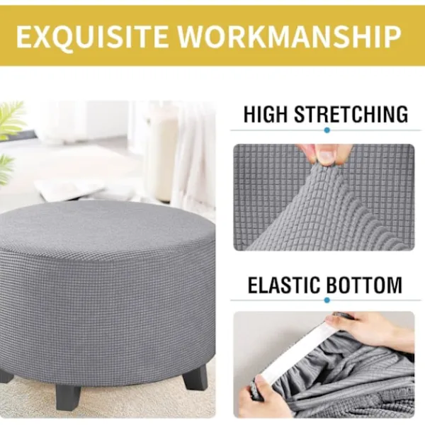 Rund stretch jacquardöverdrag (khaki, stor), fotpallöverdrag, stolskydd, halkfri elastisk botten
