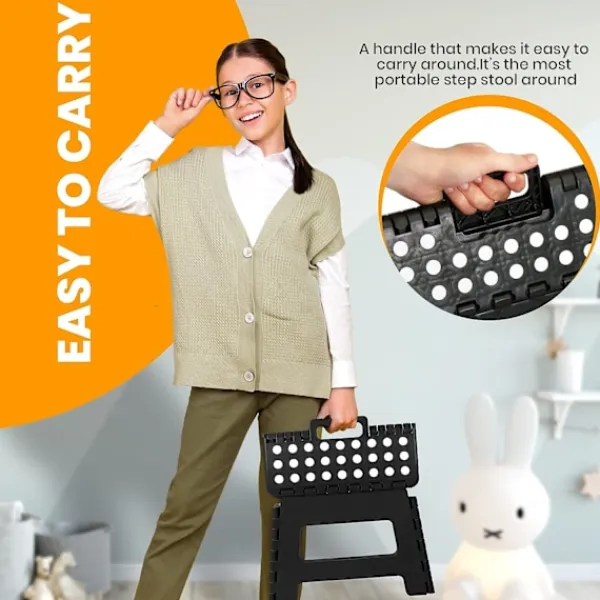 HÅLLBAR OCH STARK – Den hållbara och hopfällbara fällbara pallen är designad för barn och tål upp till 300 lbs. Låt dina barn säkert ta en bok från en hög hylla eller hjälpa till i köket