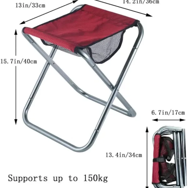 Storlek och viktkapacitet: Utfälld stol: 25,5 cm (L) x 30 cm (B) x 31,5 cm (H) / 10 tum (B) x 11,8 tum (B) x 12,4 tum (H). Hopvikt storlek: 30 cm (L) x 14,5 cm (B) / 11,8 tum (B) x 5,7 tum (B). Väger 0,7 kg för enkel transport. Maximal belastningskapacitet: 80 kg (176,3 lbs).