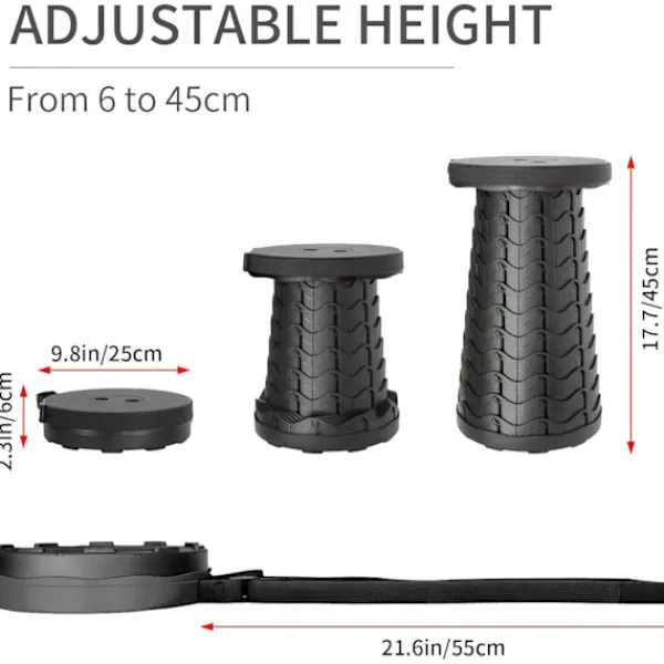 【Bred Användning】 Ta med dig den utdragbara pallen vart du än vill sitta. Den bärbara teleskopiska pallen är perfekt för inom- och utomhusbruk, såsom vardagsrum, sovrum, kontor, camping, resor, fiske, köande, picknick, grillning, trädgårdsarbete och mer. Estetik, funktionalitet och portabilitet gör våra hopfällbara pallar till det bästa valet.